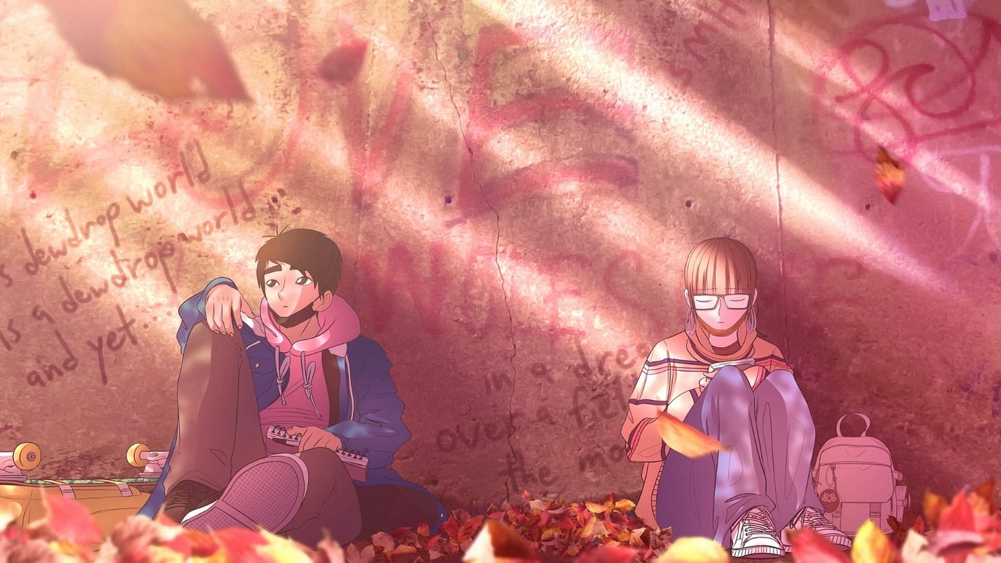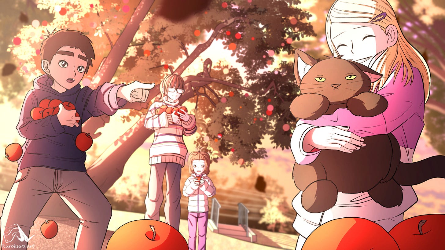 here’s “a wish that bloomed in fall.” it’s a heartwarming slice-of-life story about Emma, a girl who meets a cute little squirrel named Cinnamon, who will inspire her to pursue her dream of becoming a comic artist.