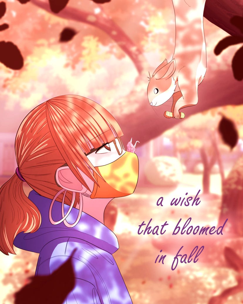 i started writing “a wish that bloomed in fall” on november 2020 after meeting a squirrel, whom I named Almond. this is him!