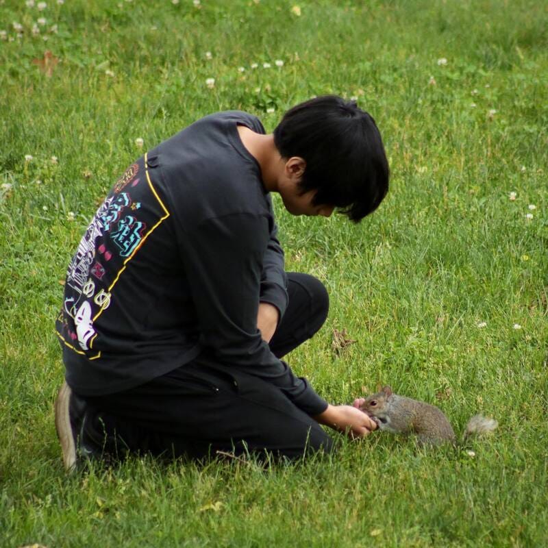 four and a half years ago, on June 13, 2021, i met some neighbors who managed to take a picture of me while feeding Lupin the squirrel.